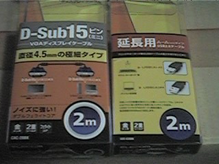VGAディスプレイケーブルとUSB2.0延長ケーブルと1端子電流通過型のマスプロの4Cケーブル用(テレビ用のケーブル)の2分配器2SPFAを別に接続しました。