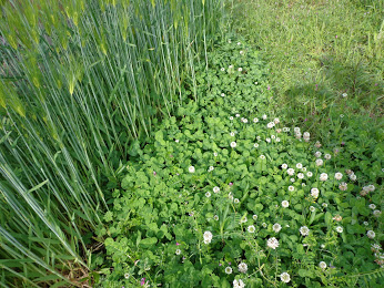 [1枚目の写真]畑に種を播いたクローバーと大麦です。 |